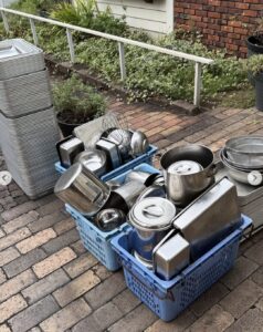 大型寸胴〜小型寸胴、アルミバット、ステンレスバット、キッチンポット、陶器類。